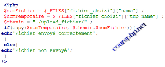 - Finalement on crée une copie sur le dossier upload_fichiers à l'aide de la méthode :