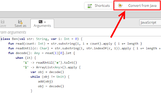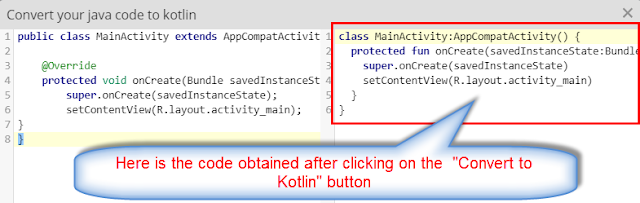 To convert your java code to kotlin with this tool, click on the "Convert from Java" button
