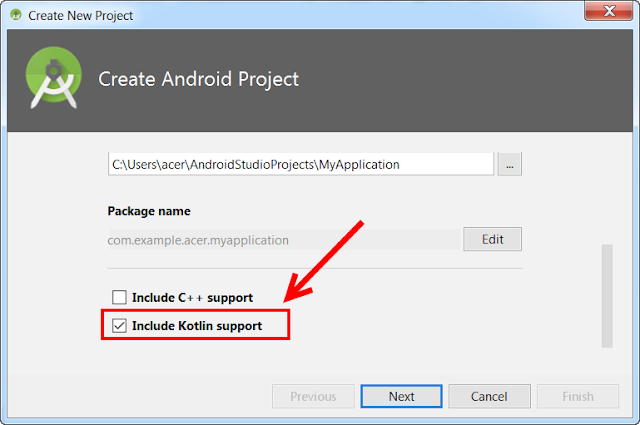 Create Android Studio Project by checking the checkBox Include Kotlin support.