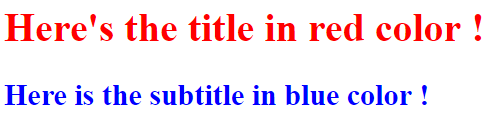 For example, if you want the title tags to be in red with the size 22px, and the subtitle tags are in blue with the size 18px, you can use the CSS code: