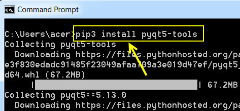 After installing the PyQt5 library, we need to install the auxiliary tools using the command prompt: