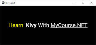 return Label(text='[color=#FFFF00]I learn[/color] [b]Kivy[/b] With [u]MyCourse.NET[/u]',